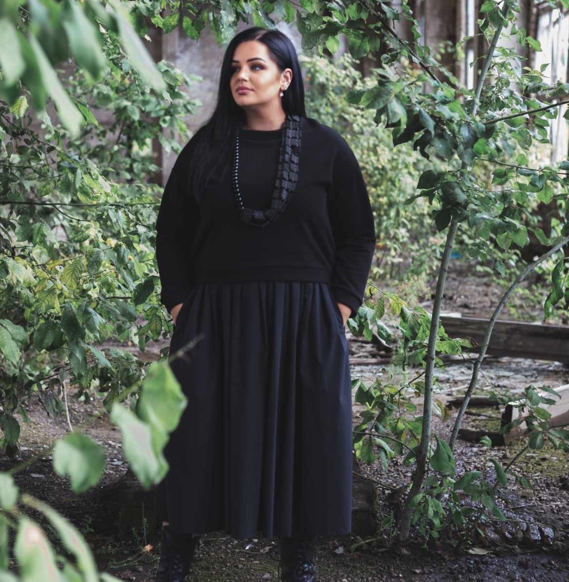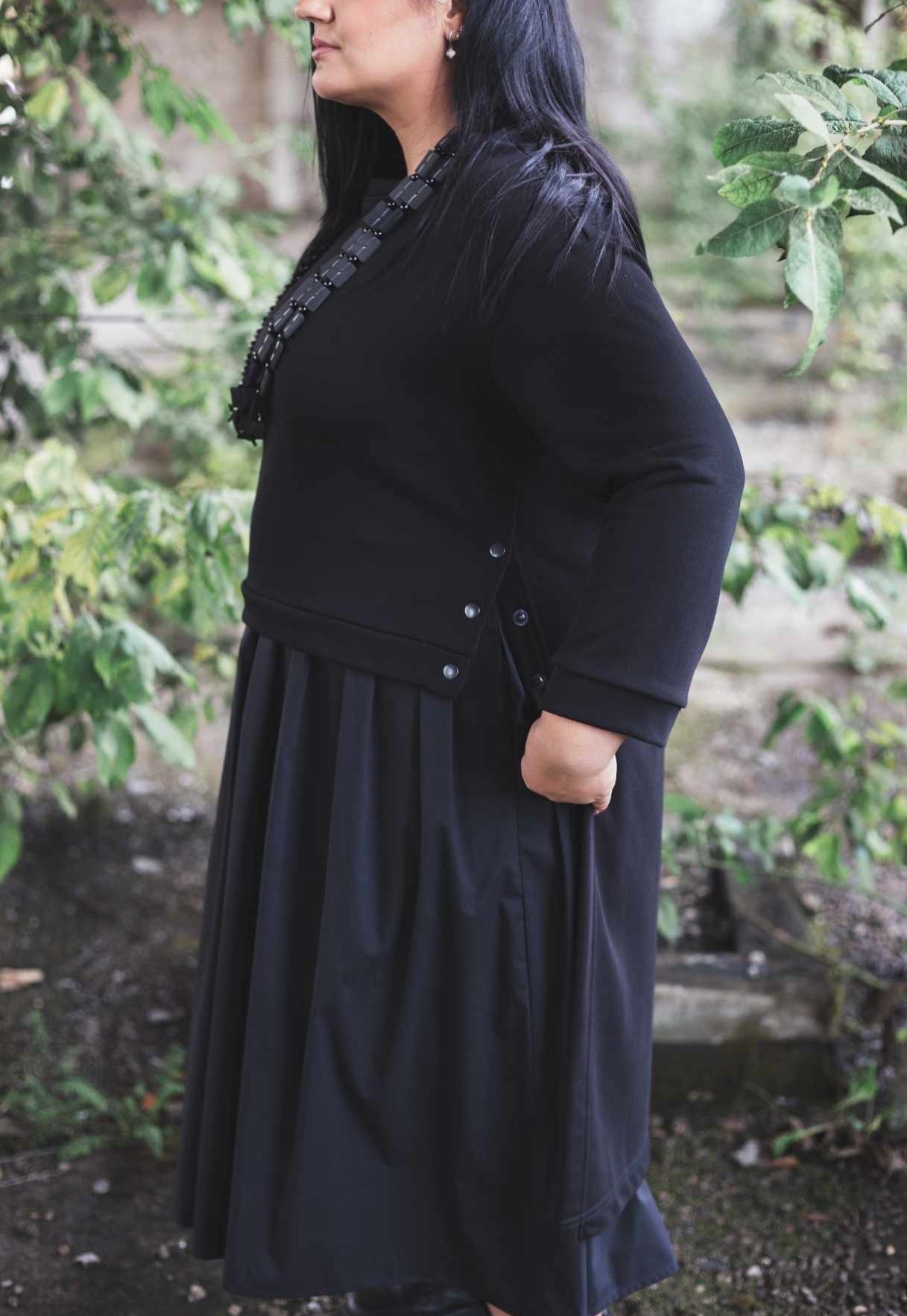 Stilingas ir išskirtinis džemperis moterims, kurio ilgis skirtingas priekyje ir nugaroje.