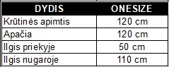 Priežiūra: skalbimas rankiniu būdu iki – 30°C temperatūroje. Nerekomenduojama džiovinti džiovyklėje. Lyginti ne aukštesne negu 110°C temperatūra.