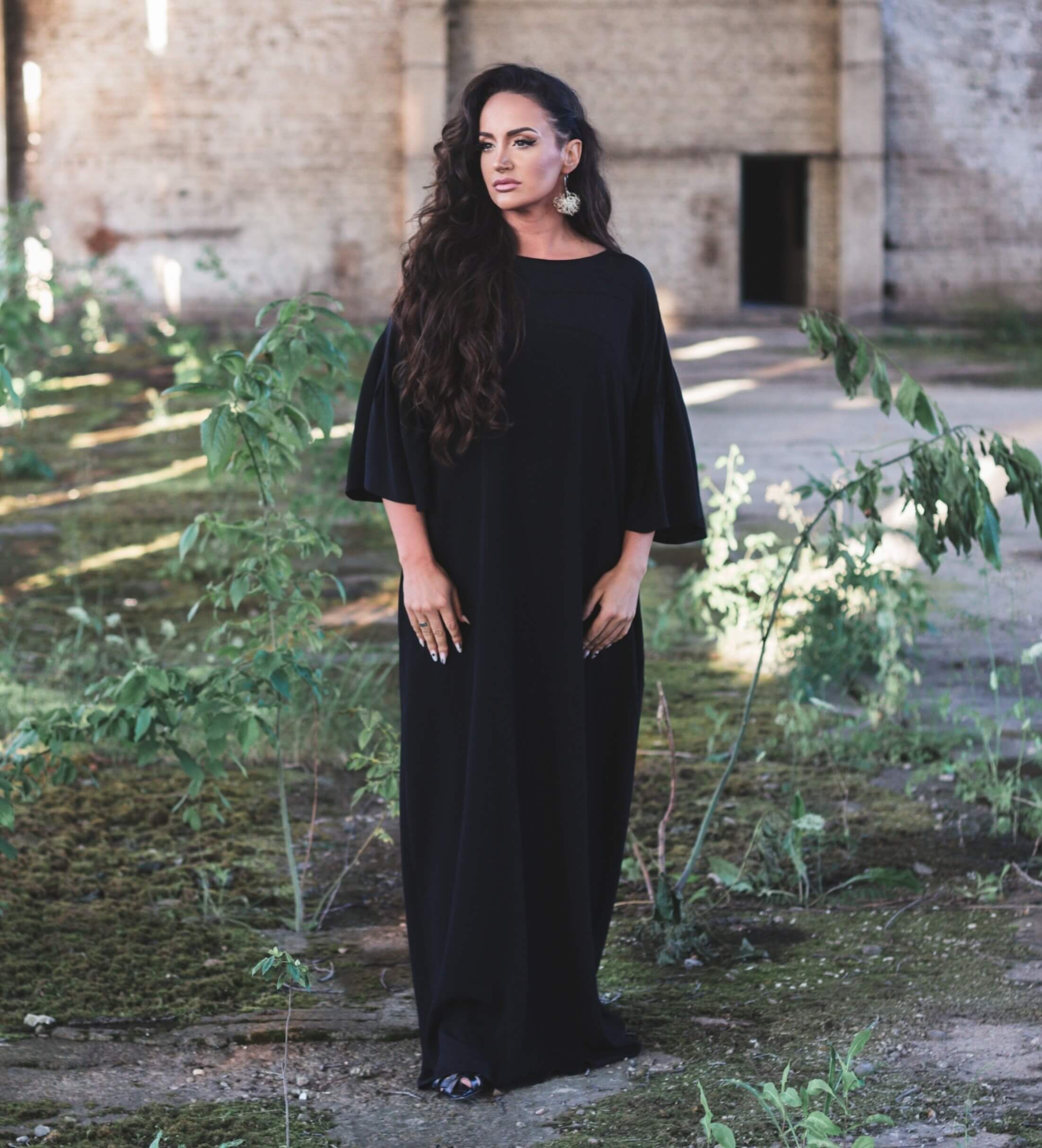 Ilga, stilinga, laisvo modelio suknelė moterims su 3/4 rankovėmis.