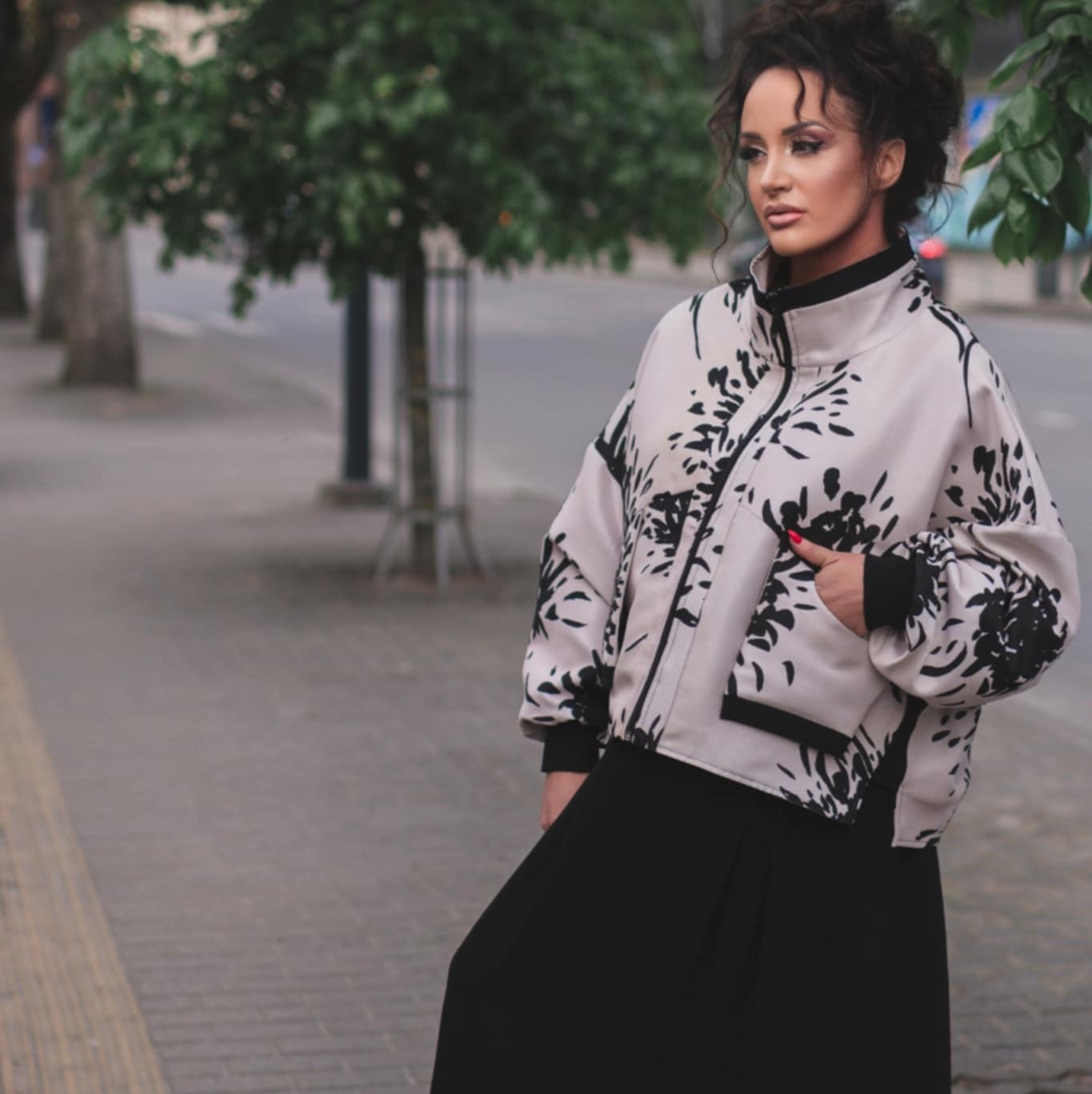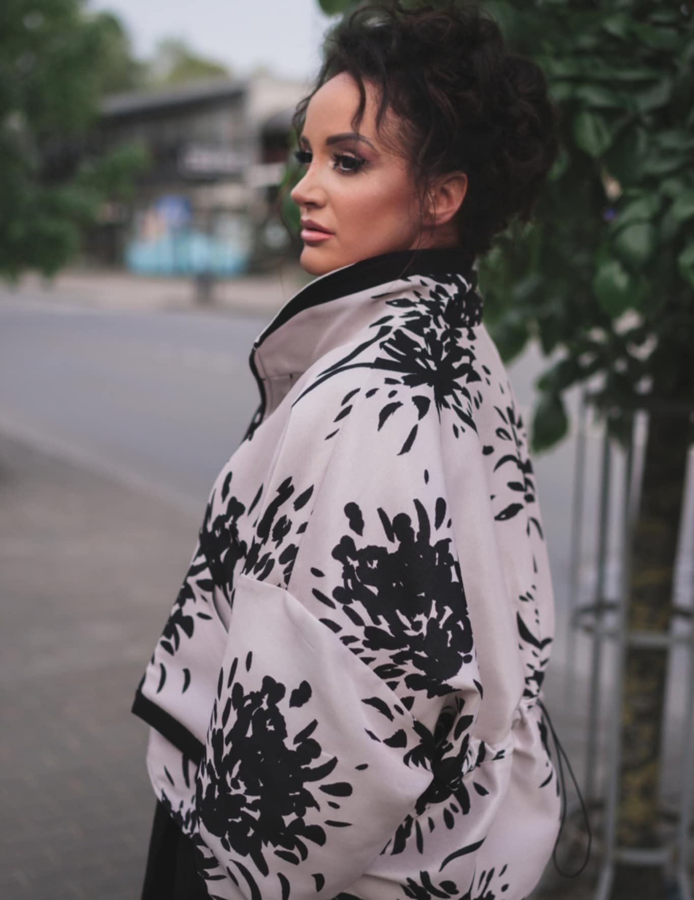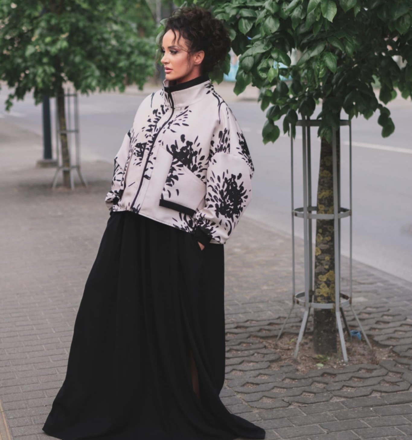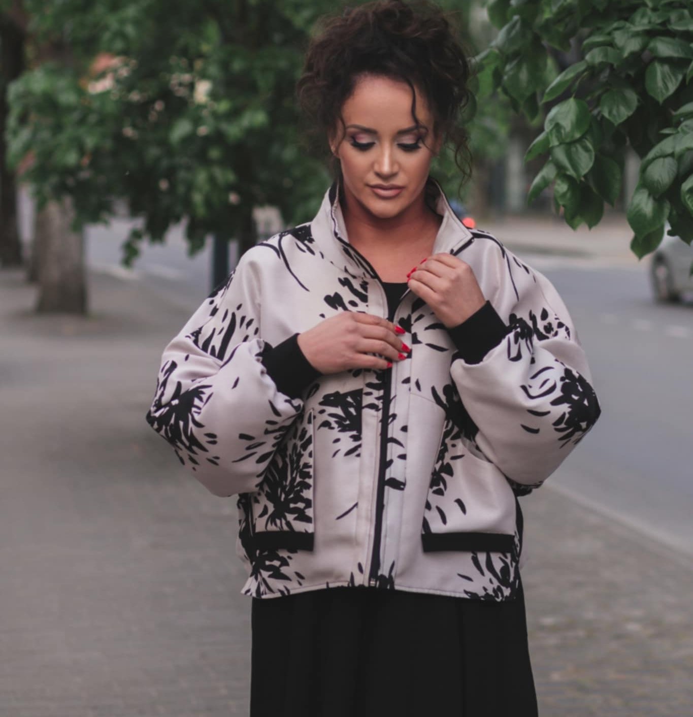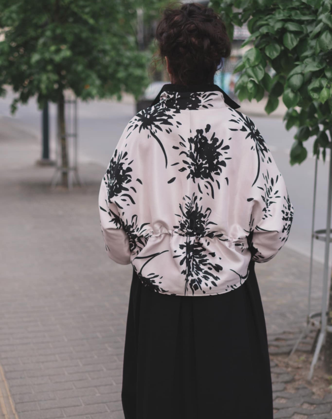 Šis balto atspalvio švarkas su išskirtiniu juodu grafiniu raštu – tai drąsus ir išskirtinis pasirinkimas. Dėl originalaus dizaino jis iš karto patraukia dėmesį ir suteikia įvaizdžiui modernumo. Puikiai tinka tiek miesto stiliui, tiek vakaro išėjimams.